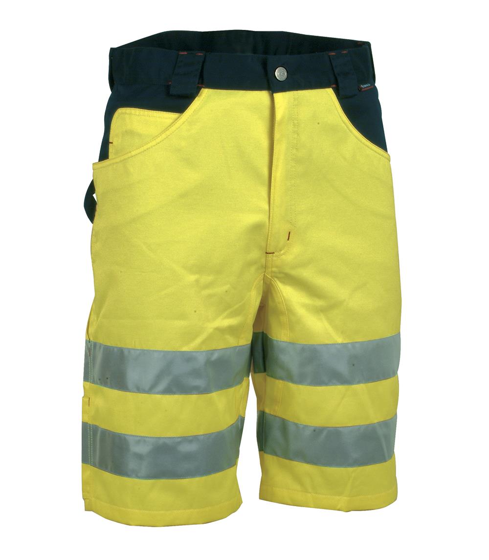 Cofra pantaloncini da lavoro alta visibilità modello Visible ideale per molteplici ambienti professionali come aeroporti, agricoltura, alta visibilità, industria, lavori su strada, logistica, settore ferroviario.
