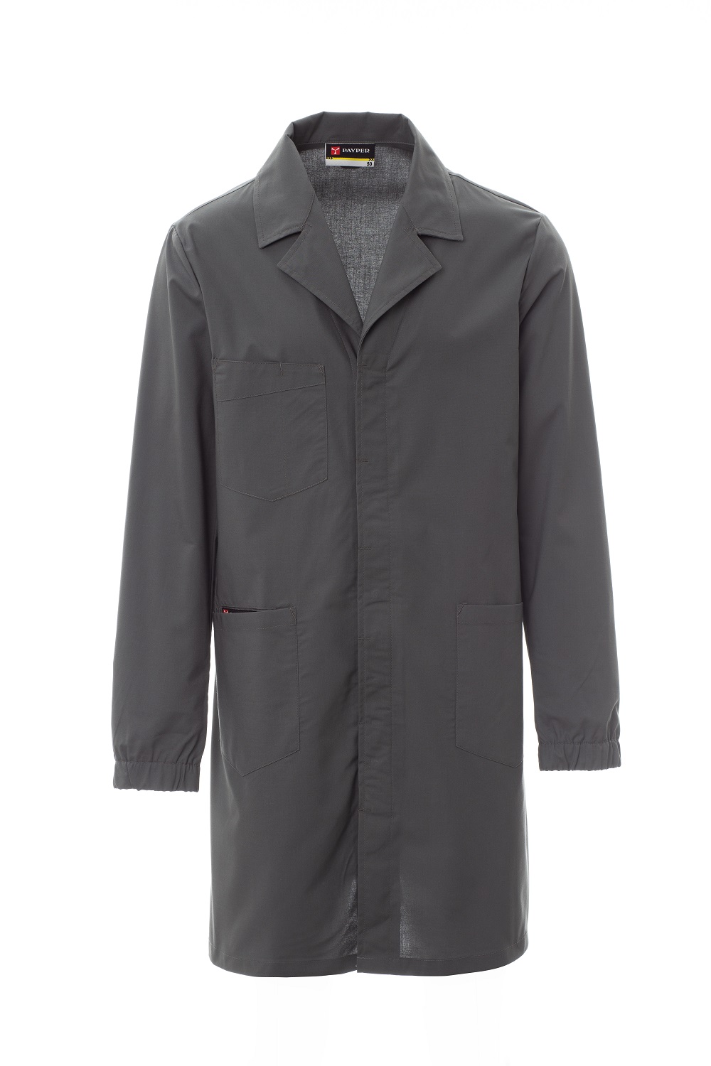 Camice da uomoda lavoro con collo rever classico, chiuso sul davanti con bottoni automatici, abbottonatura coperta, una tasca applicata sul petto con scomparto porta-penna, due tasche applicate alla vita, un taschino per smartphone, carrè schiena liscio, spacco sul retro per agevolare i movimenti, maniche lunghe con elastici stringi polso.