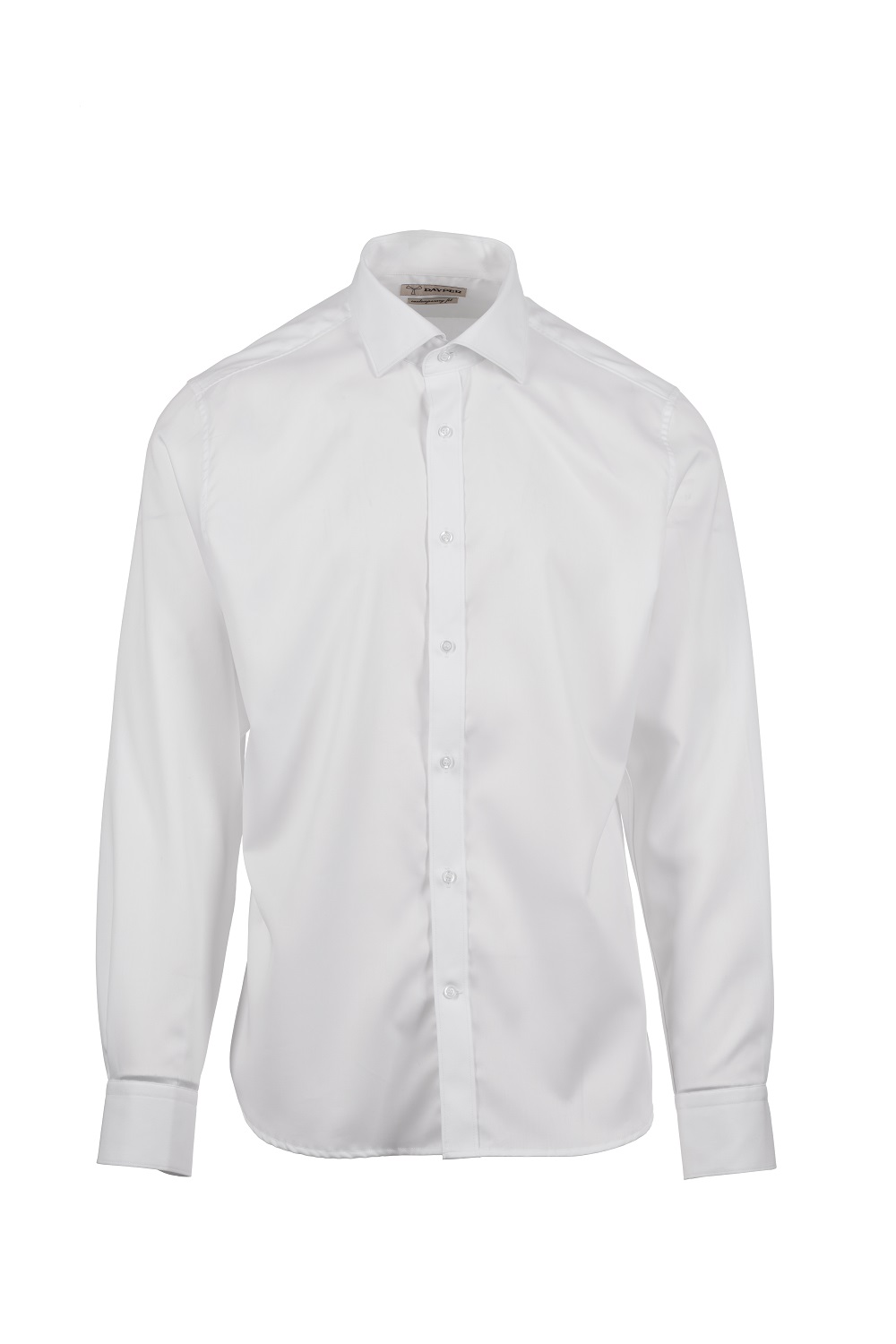 Camicia manica lunga, contemporary fit. Collo mezzo francese sagomato, con nasello chiuso e stecche estraibili. Cannoncino impunturato a vista. Bottoni effetto madreperla. Carré sul retro. Pinces di ripresa a metà schiena. Mosca di tessuto sui fianchi. Polsini stondati con 2 bottoni.
