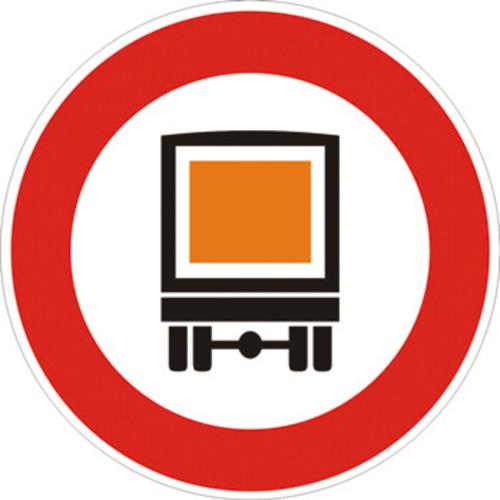 Cartello stradale di forma rotonda Transito vietato ai veicoli che trasportano merci pericolose: Vieta il transito ai veicoli che trasportano merci pericolose.