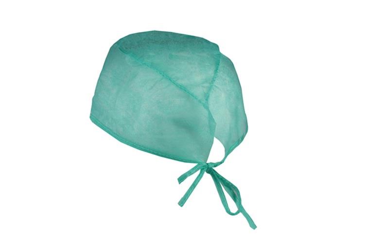 Copricapo chirurgico in polipropilene con forma a tamburo, lacci dietro la nuca, senza elastico, non causa alcuna pressione alla testa ed è perciò comodo da indossare anche per lunghi periodi di tempo. Realizzato in 100% polipropilene, grammatura 25 g/m².