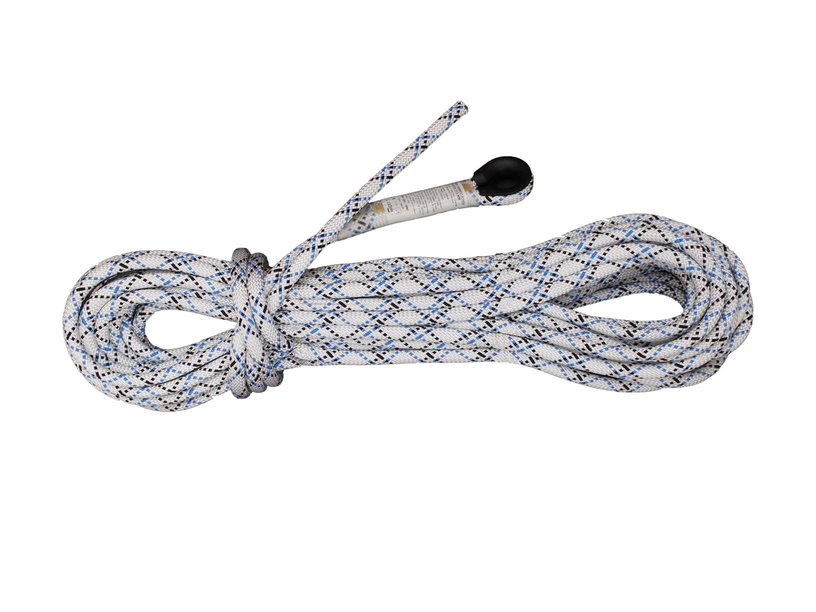 Estremità della corda cucita e dotata di redancia. Si fornisce con connettore in acciaio con chiusura filettata. Nuova tecnologia Irucheck NFC integrata per una più efficiente gestione e revisione del dispositivo.