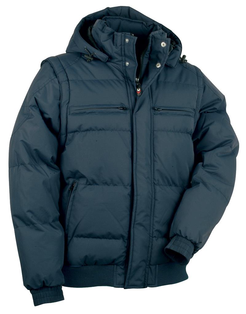 Cofra piumino da lavoro con 2 ampie tasche anteriori con zip YKK®, 2 tasche sul petto con zip YKK®, cappuccio regolabile e staccabile, maniche staccabili con zip YKK®, tasca interna con velcro, tasca interna con zip