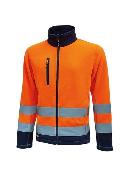 Giacca da lavoro U-Power in pile con zip intera, 2 tasche sul fondo, taschino porta cellulare sul petto chiusa con zip. Strisce riflettenti applicate su busto e maniche.