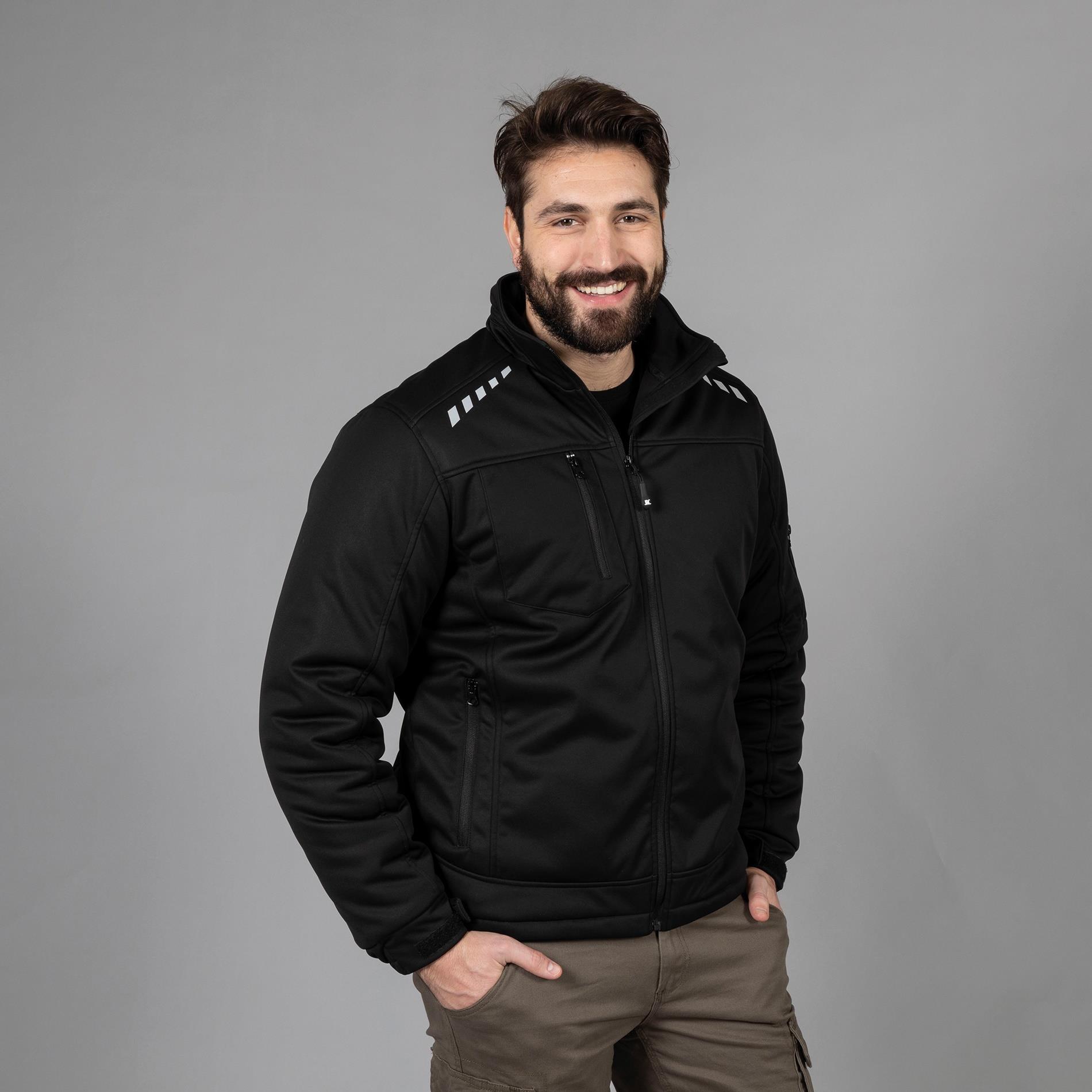 Giubbino da lavoro in soft shell a 3 strati impermeabile e imbottito realizzato in materiale 100% poliestere.