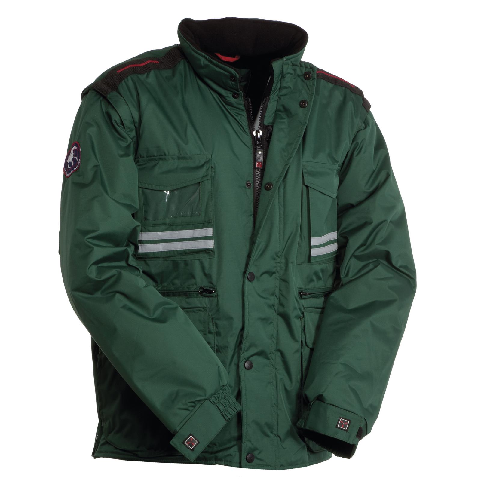 Giubbotto impermeabile e antivento, ideale per il lavoro e le attività all'aperto, con bande riflettenti grigie fronte e retro.