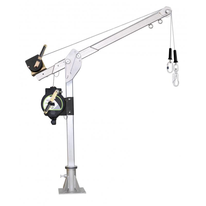 Gruetta per accesso in spazi confinati e lavori sulle facciate di edifici. Dotato di due anelli di ancoraggio sul braccio. In grado di ruotare a 360° sulla base montata – 8 posizioni. Resistenza dei punti di ancoraggio > 12 kN.