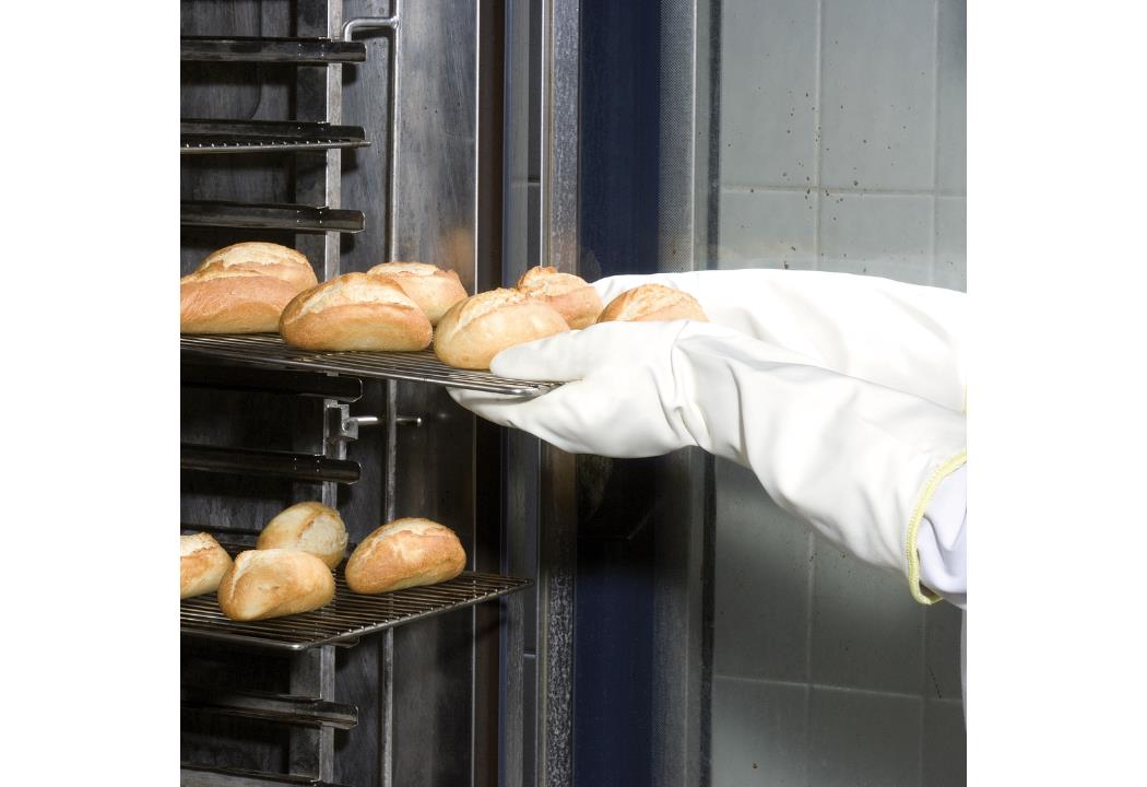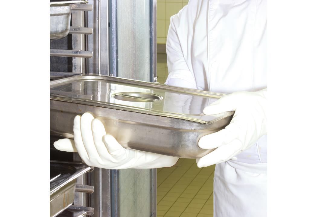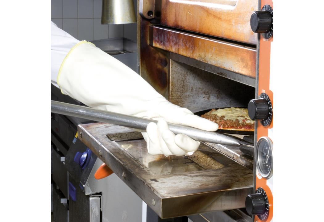 Guanto protezione termica con manica lunga (45 cm) per proteggere l'avambraccio durante la manipolazione di piatti caldi.