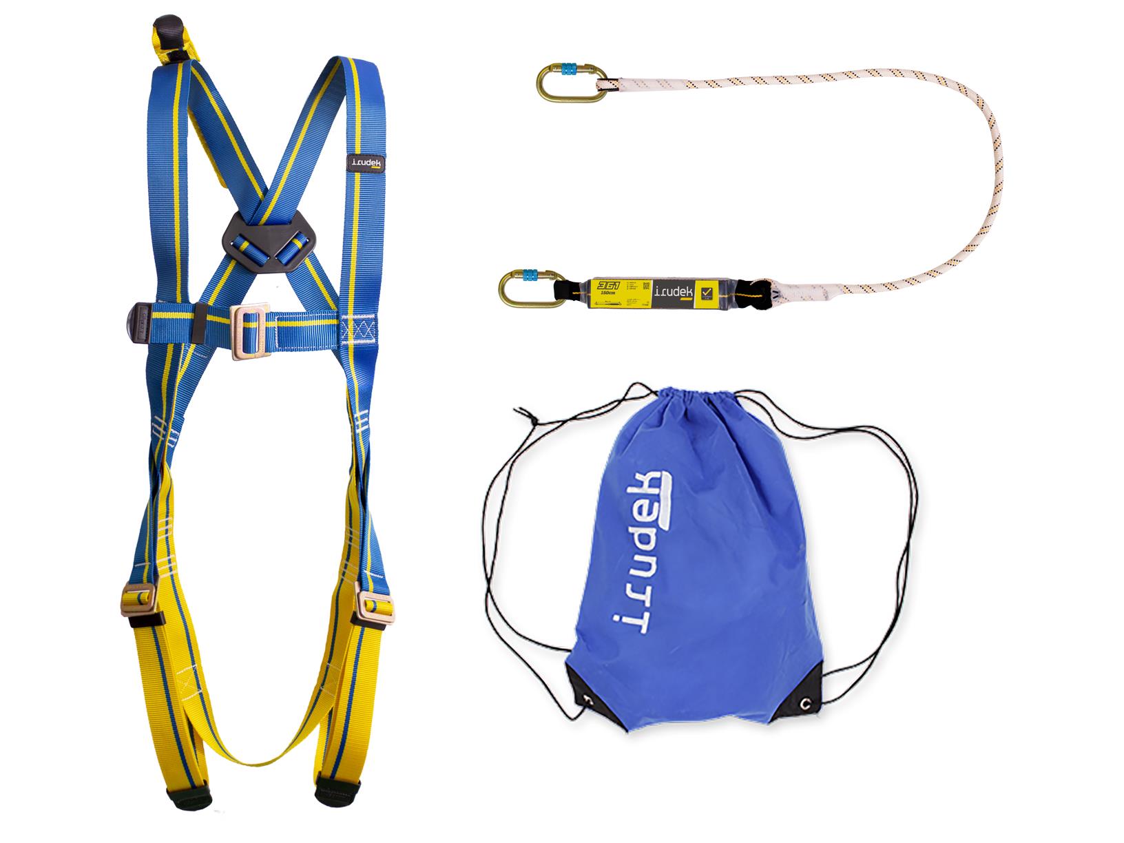 Kit anticaduta certificato per poter dissipare la forza d’impatto di una caduta e progettato per essere utilizzato in maniera facile, rapida e sicura.