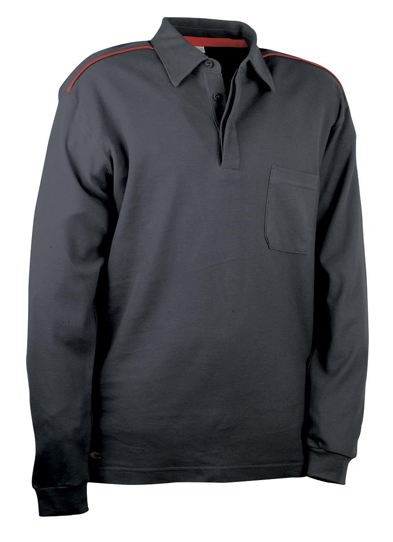 Polo da lavoro Cofra a manica lunga morbida leggera, confortevole, colletto in tessuto, polsini elasticizzati, tasca sul petto realizzata in 100% cotone piquet.