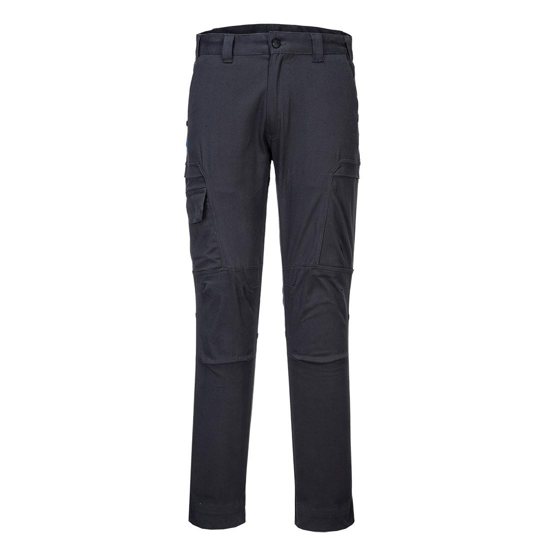 Pantalone cargo Portwest con vestibilità attillata realizzato in resistente tessuto di cotone elasticizzato per un comfort duraturo e libertà di movimento.