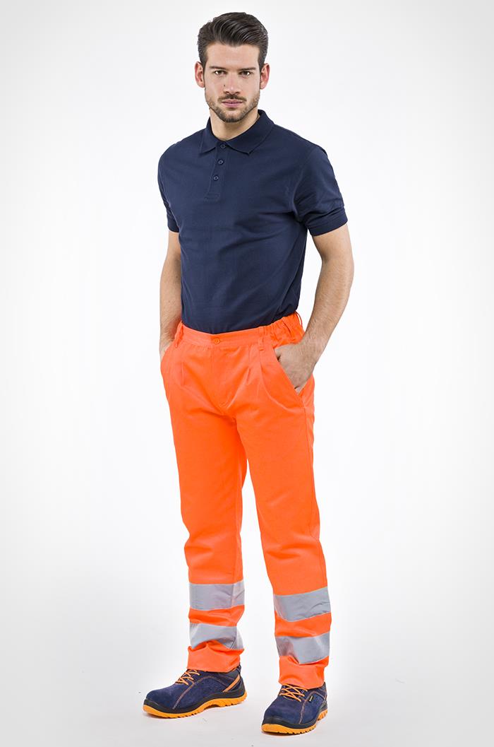 Pantalone da lavoro alta visibilità realizzato in 60% cotone, 40% poliestere, 240 g/m2.