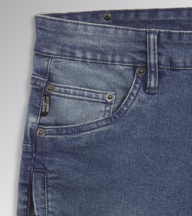 Pantaloni jeans da lavoro elasticizzato, trattamenti e cura dei dettagli tipici della tradizione della jeanseria italiana.