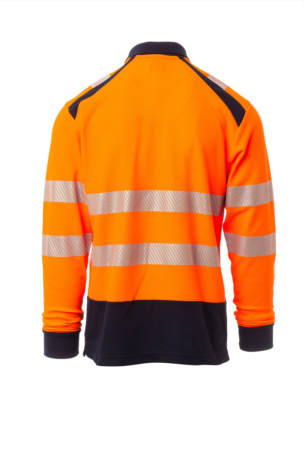 Polo a manica lunga, bicolore, in alta visibilità. Collo a 3 bottoni, con costina e cuciture coperte. Spacchetti laterali. Bande retroriflettenti segmentate e termosaldate, per agevolare i movimenti. Il tessuto, realizzato con cotone all’interno e poliestere all’esterno, garantisce grande traspirabilità e comfort ma anche maggior durata.