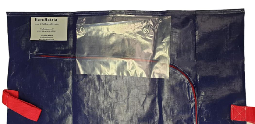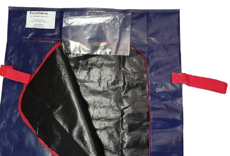 Sacco recupero e trasporto salme realizzato in tela di tessuto poliolefinico da 200gr+30gr blu laminato, impermeabile.