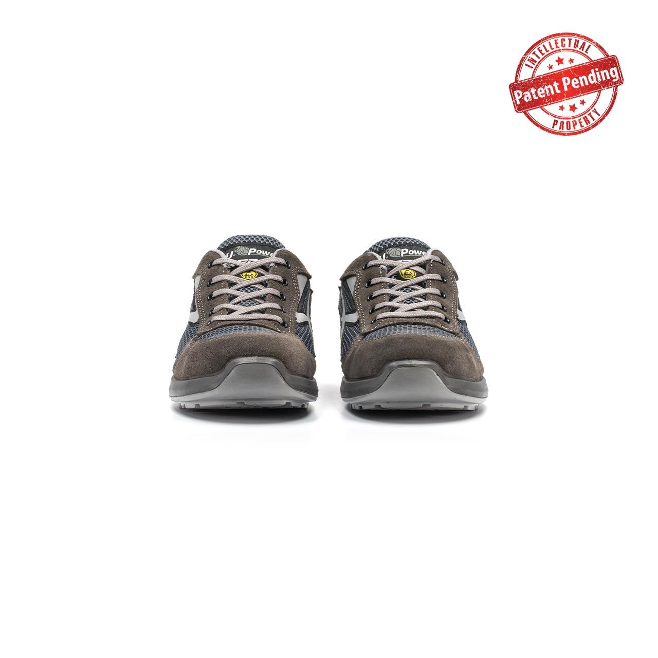 Scarpe antinfortunistiche basse, leggere e comode U power della linea Red UP, con tomaia in nylon ultra traspiranti e morbida pelle scamosciata, puntale in alluminio, antiperforazione, antiscivolo e suola PU/PU High Rebound in Elastopan di Basf , S1P SRC ESD