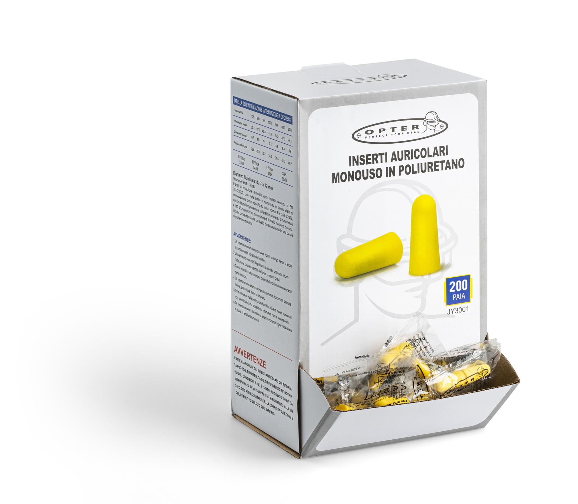 Tappi antirumore monouso realizzati in materiale soffice schiuma di poliuretano.
